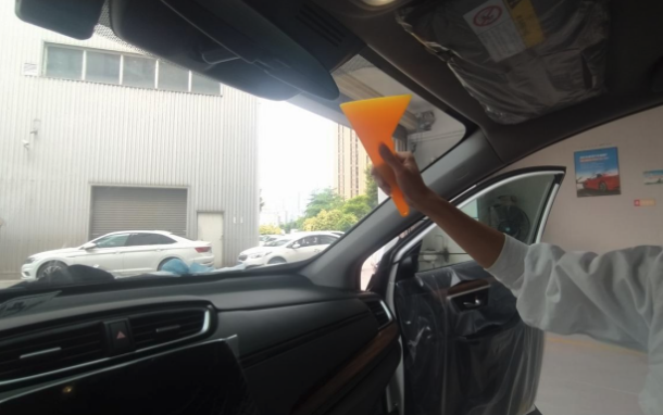 在贴膜前必须对车辆进行一个彻底清洁及车辆检查,保证贴膜玻璃干净且无任何损伤。